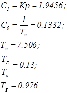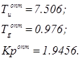 Рассчитываем оптимальные значения параметров настройки для ПИ – регулятора.