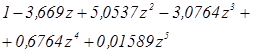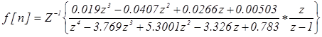 y[k]=0,647726×x[k-1] –0,620803×x[k-2] –0,037272×x[k-3] +0,149369×x[k-4] –0,024633×x[k-2] –0,001394×x[k-2] +1,481007×y[k-1] –0,695097×y[k-2]+ +0,101098×y[k-3];