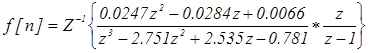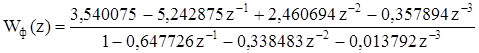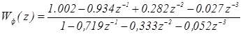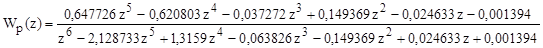 –8,004397×x[k-3]+2,770507×x[k-4] –0,497542×x[k-5]+0,036182×x[k-6]+ +1,481007×y[k-1] –0,695097×y[k-2]+ +0,101098×y[k-3].