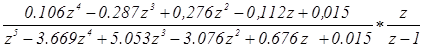 Найдем Z-передаточную функцию разомкнутой цифровой системы. Она равна Wр (z)=Wнч (z)*Wф (z) и равна