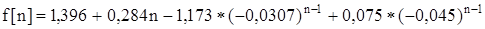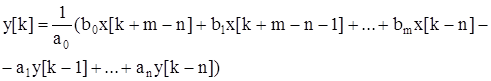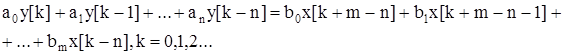 Этой передаточной функции соответствует уравнение в конечных разностях: