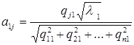 уравнения (2), являющихся в свою очередь собственным вектором, соответствующим данному собственному значению и, для удовлетворения выражению (1), разделив на корень из суммы их квадратов и умножив на квадратный корень из собственного значения, получим