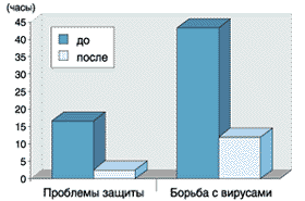 Как сообщили респонденты IDC, автоматизация таких процессов, как установка, конфигурирование и модификация аппаратных и программных систем и обеспечение безопасности пользовательских ресурсов, также позволила значительно снизить затраты на управляющие операции. Так, в среднем на 10 часов в месяц на каждые 100 пользователей уменьшилось время, затрачиваемое на инсталляцию и конфигурацию аппаратных систем. Для программного обеспечения этот показатель еще выше - 16 часов в месяц на 100 пользователей. Таким образом удалось сэкономить на процессах развертывания новых систем 17 тыс. долл. ежегодно на каждые 100 пользователей. Автоматизация процессов обеспечения защиты пользовательских ресурсов и борьбы с вирусами дала экономию в 29 тысяч долларов ежегодно на 100 пользователей (рис. 4)