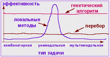 На рисунке показано, что такая комбинация позволяет обеспечить устойчиво хорошую эффективность генетического поиска для любых типов задач.