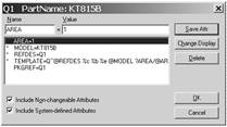 Символ «*» слева от имени атрибута означает, что этот атрибут нельзя редактировать в режиме рисования схем (только в режиме редактирования символа). Чтобы сделать этот атрибут доступным для редактирования в режиме рисования схемы, необходимо войти в режим редактирования символа (пиктограмма