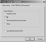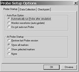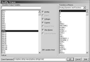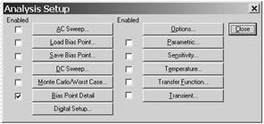 . В открывшемся окне (рис. 7) нажатием курсора отмечают нужные директивы моделирования (при этом в графе Enabled появляется флаг). После нажатия соответствующей кнопки открываются диалоговые меню задания директив моделирования.