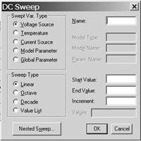Рис. 9 - Диалоговое окно задания цикла изменения параметров в режиме DCSweep