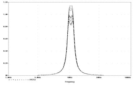 Затем будут выполнены расчёты переходных процессов согласно установкам списка значений амплитуд, установленных в окне Parametric (рис. 10): А=1V, A=5V, A=10V.