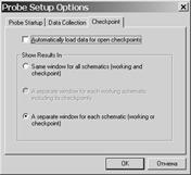 Ещё одно замечание необходимо сделать о режиме Options – установка параметров моделирования. До приобретения навыков работы с программой Schematics лучше пользоваться теми опциями, которые система устанавливает по умолчанию. При ошибочно выбранных значениях некоторых параметров моделирования может быть нарушена сходимость вычислений из-за ограниченности разрядной сетки компьютера и моделирование схемы провести не удастся. Однако в некоторых случаях за счёт установки необходимых опций удаётся повысить точность расчётов, особенно связанных с определением производных.