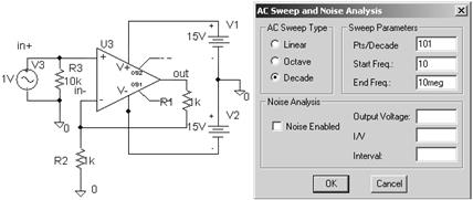 2.1.1 AC Sweep -расчёт частотных характеристик и уровня шума
