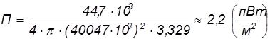 Мощность сигнала на выходе антенны – 0,3 пВт