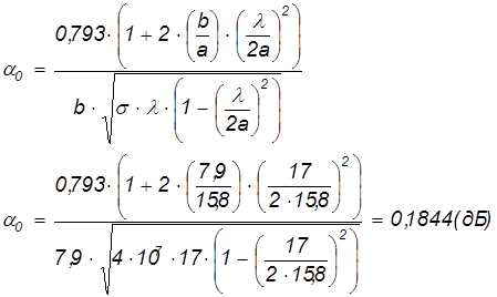 Затухание в волноводе обусловлено в основном электрическими потерями в металле. Значит необходимо выбрать металл с хорошей удельной проводимостью. Возьмем алюминий – относительно дешевый и легкий материал с хорошей проводимостью. Тогда: