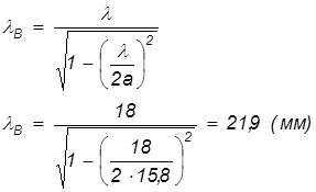 Вычислим длину волны в волноводе: