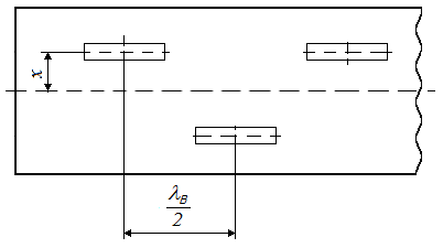 Следующим этапом расчета элемента есть определение его смещения относительно продольной оси волновода. Максимальное возбуждение продольных щелей волновода имеет место при смещении