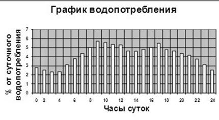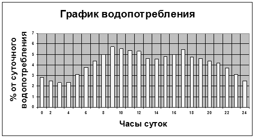 Строим график водопотребления объединенного водопровода по часам суток (рис. 1).