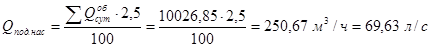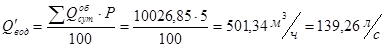 В данном примере Q¢пос.пр -Qдуш = 764,96-0=764,96 м3 /ч