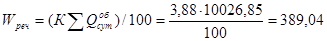 Wн.з.х-п = Q¢пос.пр . tт = 764,96 . 3 = 2294,88 м3 .