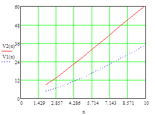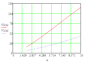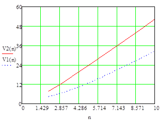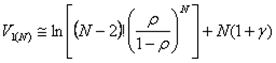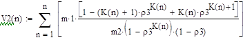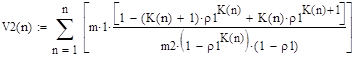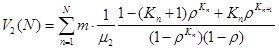 Шаг 3. Определяется время V2 (N) пребывания пакета в LSP - пути сети MPLS из N узлов (маршрутизаторов) без организации LSР - туннеля при наличии ограниченной очереди к узлу n длиной Kn по формуле: