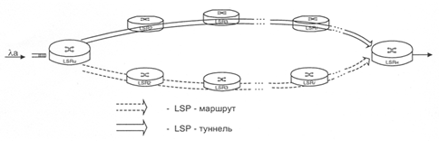 означает нагрузку, обслуживаемую узлом LSР-маршрута. Обслуживание же этой нагрузки узлами, входящими в данный LSP - маршрут, и является основной работой данного фрагмента сети MPLS.
