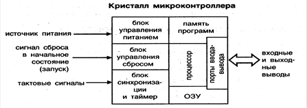Микроконтроллер помимо центрального процессора (ЦП) содержит память и многочисленные устройства ввода/вывода: аналого-цифровые преобразователи, последовательные и параллельные каналы передачи информации, таймеры реального времени, широтно-импульсные модуляторы (ШИМ), генераторы программируемых импульсов и т.д. Его основное назначение - использование в системах автоматического управления, встроенных в самые различные устройства: кредитные карточки, фотоаппараты, сотовые телефоны, музыкальные центры, телевизоры, видеомагнитофоны и видеокамеры, стиральные машины, микроволновые печи, системы охранной сигнализации, системы зажигания бензиновых двигателей, электроприводы локомотивов, ядерные реакторы и многое, многое другое. Встраиваемые системы управления стали настолько массовым явлением, что фактически сформировалась новая отрасль экономики, получившая название EmbeddedSystems (встраиваемые системы).