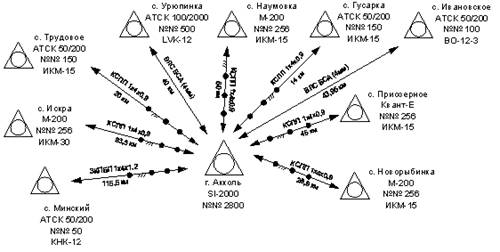 Примечание: Кроме выше указанных не телефонизированных сел (таблица 1.1): Малый Барап, Красный горняк, Кзыл-ту, Кенес, Радовка, Красный Бор непосредственно соединены к ЦС и имеют прямые номера.