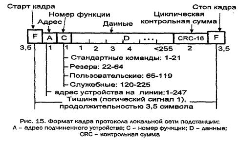На операторской станции ПУ существуют динамические объекты, отображающие на экране монитора состояние реального оборудования и подсистем контролируемых пунктов. Для идентификации динамических объектов им назначаются управляющие имена. Динамические объекты могут принадлежать разным программам операторской станции и некоторые из них могут обмениваться сообщениями. Эти сообщения могут циркулировать как в пределах операторской станции, так и выходить на каналы связи с контролируемыми пунктами. В последнем случае используется протокол ModbusRTF, реализованный с помощью драйвера Modbusоператорской станции. Для канала связи обычно используется формат символа без бита паритета с одним стоп-битом.