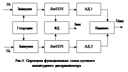 і знака цих співвідношень. Спрощена функціональна схема такого дискримінатора наведена на рис. 4.