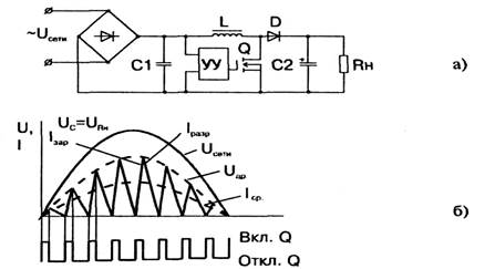 Наибольшее распространение в схемотехнике источников питания мониторов получил импульсный источник питания, содержащий стабилизатор напряжения, регулирующий элемент которого работает в ключевом режиме.