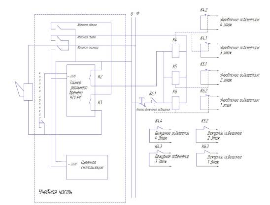 3.1 Электрическая схема автоматики подачи звонков и отключения освещения главного корпуса