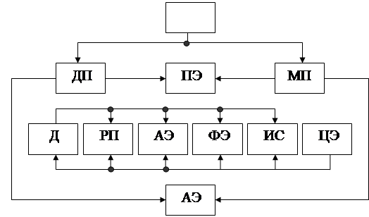 Согласно рисунку 2.2 элементная база (ЭБ) подразделяется на двухполюсники (ДП) и многополюсники (МП). Считаем необходимым выделить ДП в отдельное подмножество в виду их исключительного значения в качестве компонент, на основе которых конструируется более сложные по структуре и назначению компоненты, в том числе и МП. ДП и МП в свою очередь подразделяются на пассивные (ПЭ) и активные (АЭ) элементы. АЭ отличаются от ПЭ тем, что режим их функционирования обязательно определяют дополнительные факторы, например, токи напряжения смещения рабочей точки. Подклассами П и А являются элементы: дискретные элементы (Д)- элементы со сосредоточенными постоянными параметрами, относительно простой конструкции и принципа действия (резисторы, конденсаторы, транзисторы и т.п. ); с распределенными параметрами (РП); акустоэлектронные элементы (АЭ); функциональные элементы (ФЭ); интегральные схемы (ИС); цифровые элементы (ЦЭ). По существу, подклассы элементов, определяющих структуру АЭ и ПЭ, совпадают за исключением ЦЭ, которые являются особым подклассом активных элементов, элементарных логических ИС до сложнейших микропроцессорных устройств.