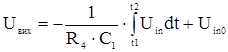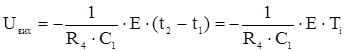 Схему інтегратора отримуємо, включивши в ланцюг зворотного зв'язку інвертуючого підсилювача замість резистора конденсатор. В цьому інтеграторі подаючи на вхід напругу додатньої полярності конденсатор починає заряджатися і напруга на виході дорівнює: