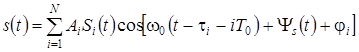 Все параметры сигнала: амплитуда А, закон ее изменения во времени S0(t), частота w0 и закон изменения начальной фазы
