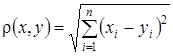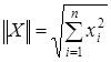 , i – номер измерения в выборке X. Если представим n-мерное пространство, в котором на каждой оси координат отложим соответствующие по номеру измерения, то вся выборка будет соответствовать точке этого пространства или вектору, конец которого лежит в этой точке. Длина вектора в данном пространстве может быть представлена так: