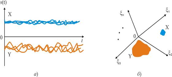 Геометрическое представление сигналов и помех связано с введением многомерного пространства выборок и широко используется в теории сигналов [7, 8]. Пусть имеется реализация x(t) случайного процесса X(t). В соответствии с теоремой Котельникова эта реализация может быть представлена в виде дискретных отсчетов xi = x(iDt). Число этих отсчетов (единичных измерений) – N, совместно они образуют выборку X размером N –