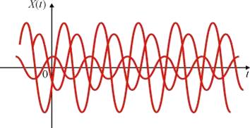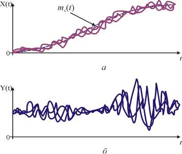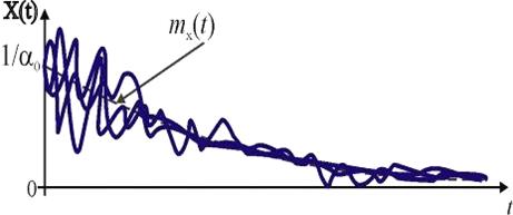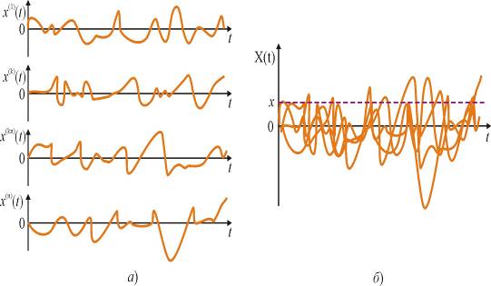 Из рис. 31 и аналитического представления квазидетерминированного процесса X(t) очевидно, что его вероятностные характеристики (например, математическое ожидание, дисперсия, плотность вероятности и т.д.) не зависят от времени, т.е. процесс является стационарным. В то же время каждая из реализаций характеризуется своей дисперсией, поэтому процесс неоднороден и не является эргодическим, т.е. его характеристики нельзя оценить по одной реализации.