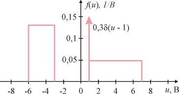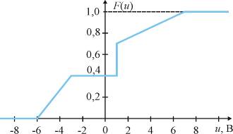 имеет скачок на 0,3, поэтому в плотности вероятности есть d-функция с площадью, равной величине скачка. На участке от 3 до 7 В также