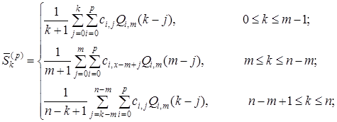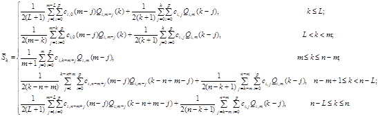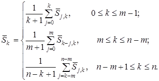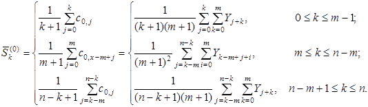 каждой строчки матрицы (5). Для перехода от матричного представления оценки обратно к одномерной реализации необходимо усреднить ее значения по столбцам. Результирующая оценка полезной составляющей запишется в следующем виде: