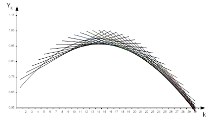 На рис. 13 представлено семейство откликов дискретной системы, которая описывается выражением (23) для интервала