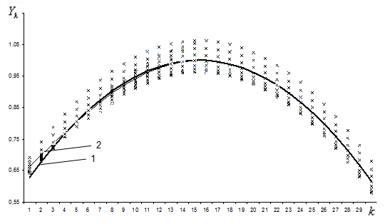 Значения оценок, составляющие матрицу (6), получены путем аппроксимации исходной реализации