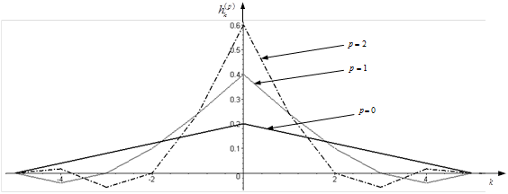 Таким образом, аналитически показано, что обработку методом кусочного размножения оценок можно рассматривать с точки зрения дискретной фильтрации. Параметры метода обработки однозначно связаны с системной функцией фильтра. Получены выражения для нахождения импульсной характеристики дискретного фильтра, которая зависит как от параметра