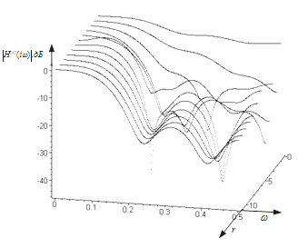 На рис. 14 представлено семейство АЧХ, полученных на основе семейства характеристик, представленных на рис. 13 при