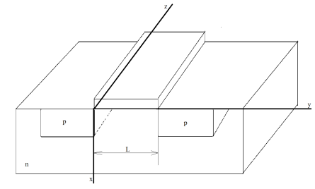 В данной работе будет построена компьютерная модель зависимости геометрии индуцированного канала МДП-транзистора от напряжения приложенного к стоку. Данная модель является полезной при изучении свойств полевого транзистора, т.к. пространственные характеристики канала определяют вид ВАХ прибора.
