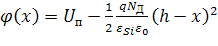 Распределение потенциала в слое объемного заряда, обусловленного зарядом ионизированных атомов примеси NД , подчиняется уравнению Пуассона. Смещая начало координат в точку xК , уравнение Пуассона для слоя объемного заряда можно записать в виде