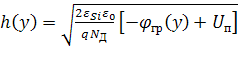 Рисунок 16 – Зависимость h(y) при напряжении перекрытия канала