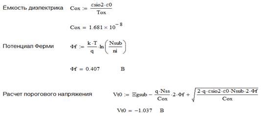 Рисунок 9 – Расчет порогового напряжения транзистора