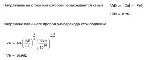 , канал в районе стока оказывается перекрытым слоем объемного заряда. Нужно найти это напряжение на стоке. Расчет ведем по формуле (1.1). При дальнейшем увеличении напряжения на стоке наступит момент пробоя p-n-перехода сток-подложка. Это напряжение тоже необходимо посчитать. Расчет пробивного напряжения p-n-перехода будем вести по приближенной формуле