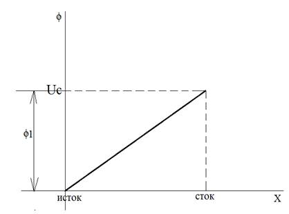 линейным, т.е. потенциал будет изменяться от истока к стоку как показано на рисунке 12.