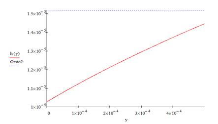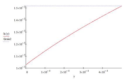 Наглядно поведение толщины ОПЗ можно проследить построив график зависимости h(y). Сначала построим график зависимости h(y) при напряжении на стоке меньше напряжения перекрытия канала (рисунок 15).