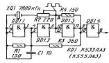 Инвертор DD1 3 с параллельно включенным резистором R4 предназначен для формирования в точке А импульсов напряжения, близких по форме к прямоугольным, и уменьшения тока через кварцевый резонатор. Так как резистор R2 уменьшает коэффициент запаса по возбуждению, то для того, чтобы компенсировать это уменьшение, применена местная положительная обратная связь через резистор R3.