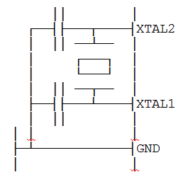 XTAL1 и XTAL2 являются входом и выходом инвертирующего усилителя, на котором можно собрать генератор тактовых импульсов. Можно использовать как кварцевые, так и керамические резонаторы. При подключении внешнего тактового сигнала вывод XTAL2 остается неподключенным, а XTAL1 подключается в выходу внешнего генератора.